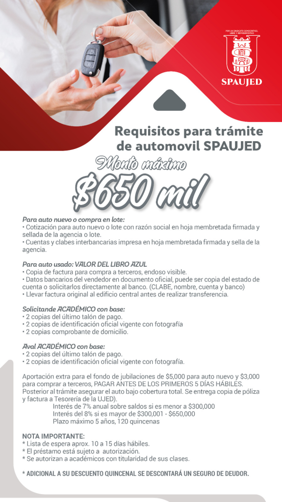 A partir del pasado 1 de agosto de 2023, los préstamos de automóvil tienen un monto máximo de 650 mil pesos, gracias a las gestiones del Comité Ejecutivo.