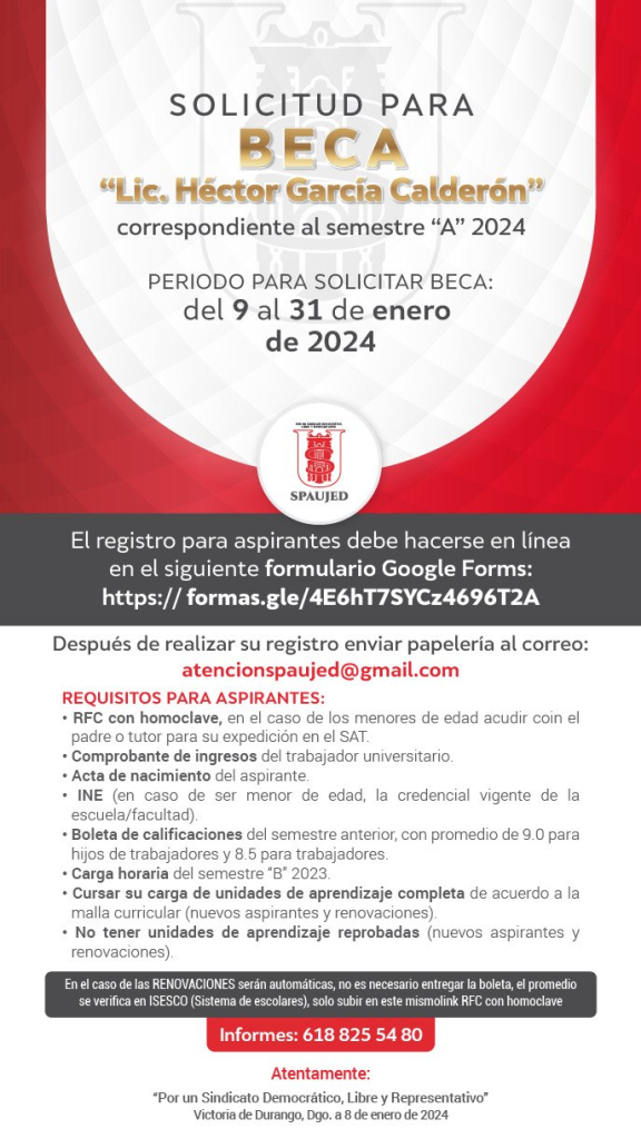 Beca Lic. Héctor García Calderón: lista de aprobados y bajas (Semestre 2025 / B)